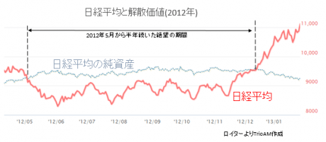 過去に日経平均が解散価値を下回ったことは