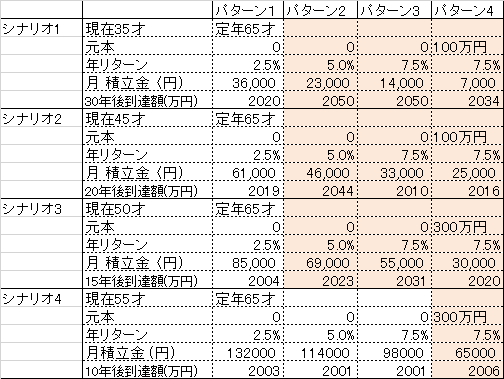シナリオ3は、現在50歳の人が、定年65歳になるまでに