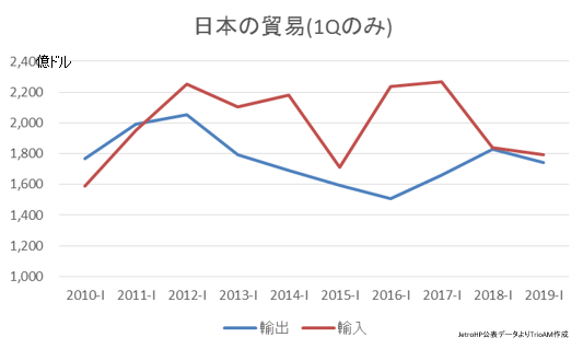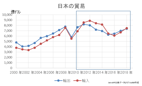 その日本の貿易において、おおざっぱな概略をみてみましょう。