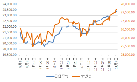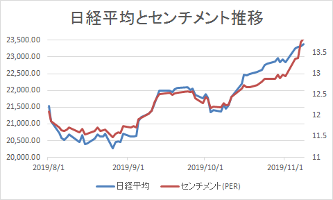 2019年11月5日、日経平均は、