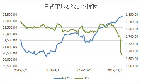 一株当たりの利益と合わせて見てみます。