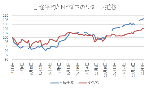 日経平均は108.6 (11月8日終値)です。