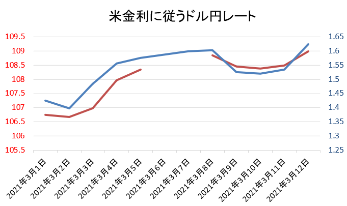 この金利と、ドル円レートを合わせてみると、こうなります。