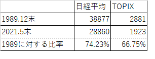 1989年末、TOPIXは2881でした。