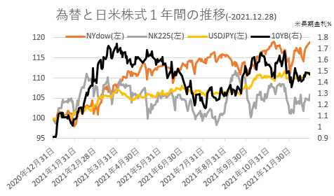 日経平均とNYダウを並べてみる事はよく行うと思います。