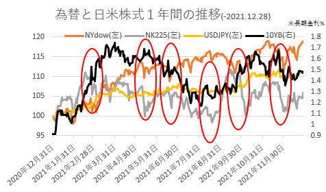 米金利が上がると日本株が下がる傾向があることがハッキリわかるでしょう。