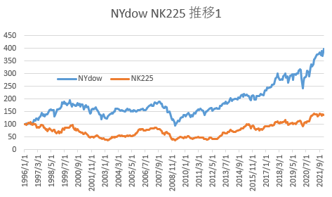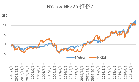 NYダウとNK225を長期で比較してみる課題があるとします。