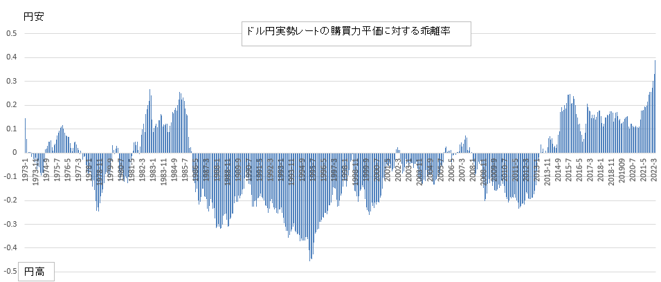 1973年以降、実質的な円安が最も進んでいるのが今、