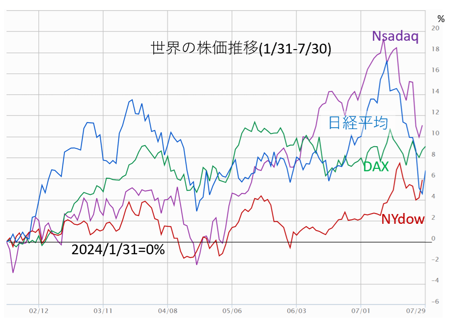 日欧米、どの株価も、
